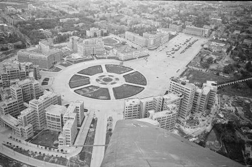 Один з найбільших у світі майданів вийшов незвичної форми у вигляді хімічної реторти. Прагнення надати майдану чіткішої конфігурації призвели до його просторового розчленування на прямокутну частину, яка слугує головним міським форумом, та круглу, в центрі якої до війни була величезна клумба, а потім на її місці було споруджено Круглий сквер (1965).